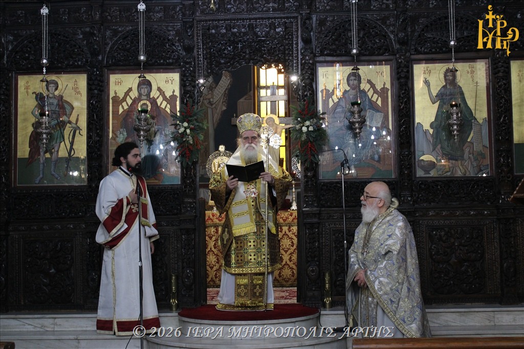 Ι.Μ.ΑΡΤΗΣ: Την Πέμπτη 1 Ιανουαρίου 2026, ανήμερα της Πρωτοχρονιάς, ο Μητροπολίτης Άρτης κ. Καλλίνικος προεξήρχε της Θείας Λειτουργίας και ευλόγησε τη Βασιλόπιτα στον Μητροπολιτικό Ιερό Ναό του Αγίου Δημητρίου Άρτης.