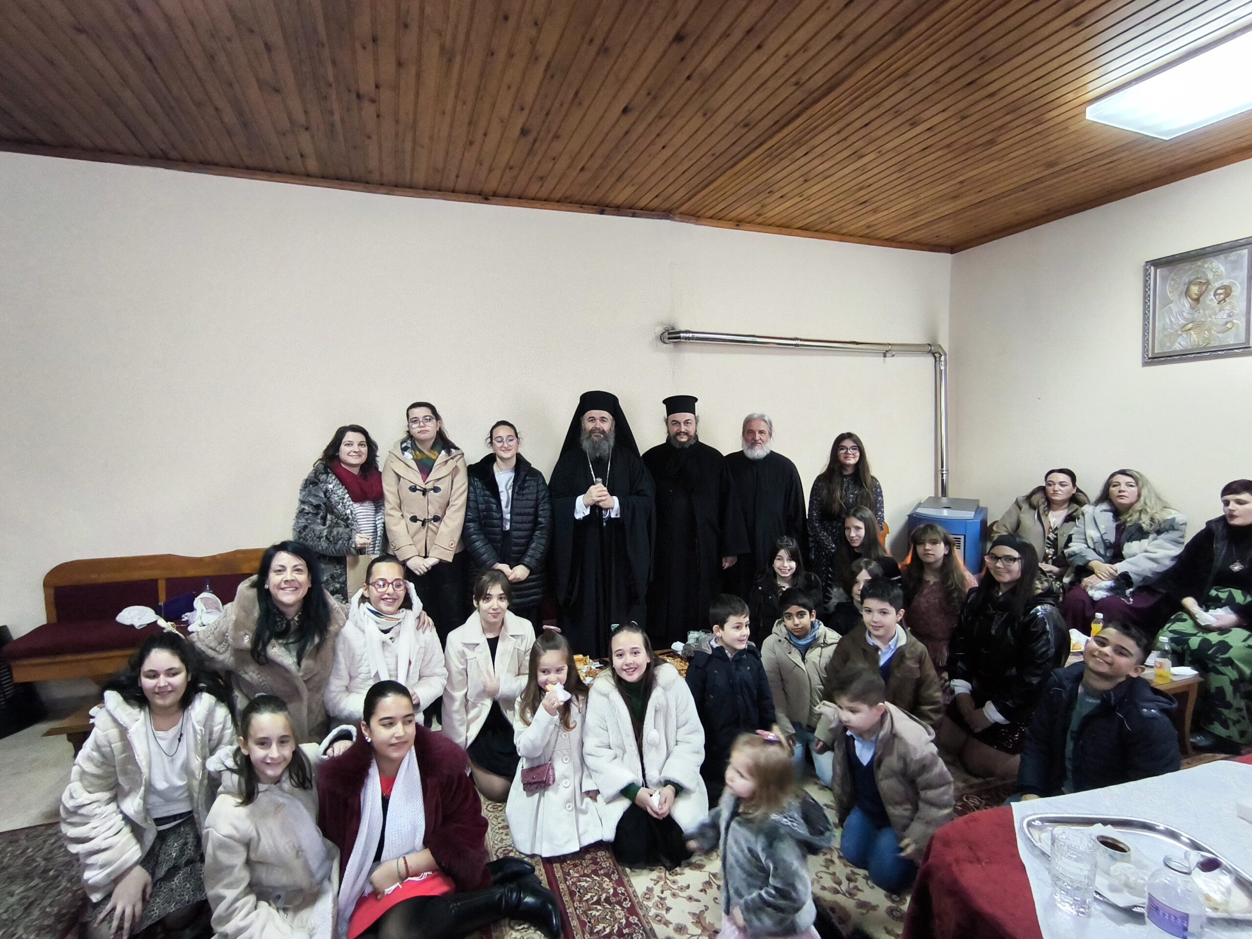 Ο Σεβασμιώτατος ευχαρίστησε τους ιερείς του Ναού, τους ιεροψάλτες, τους επιτρόπους και όλους όσοι συνδράμουν στην εύρυθμη λειτουργία του Ιερού Ναού. Στη συνέχεια ευλόγησε τη Βασιλόπιτα των κατηχητικών της Ενορίας.