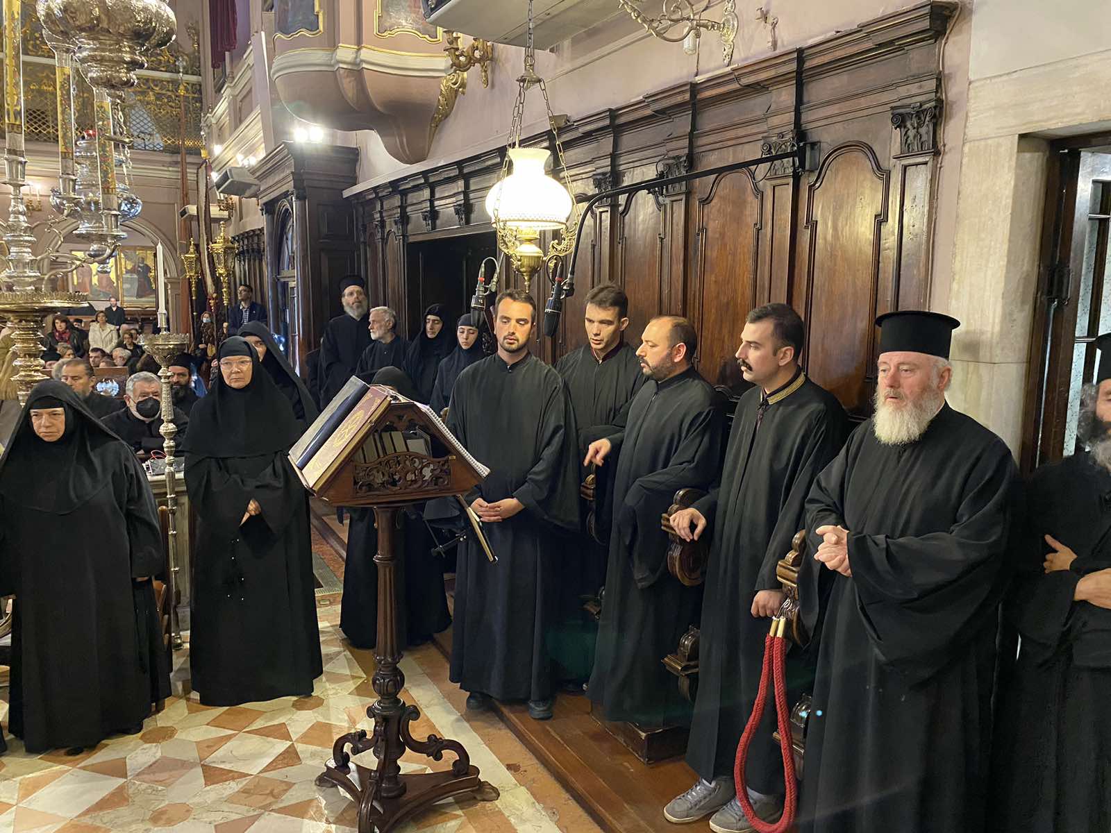 Τους ύμνους της εορτής απέδωσαν δύο εξαίρετοι χοροί, με χοράρχες τον κ. Νικόλαο Μακρόπουλο και τον κ. Απόστολο Καραμπελιά.