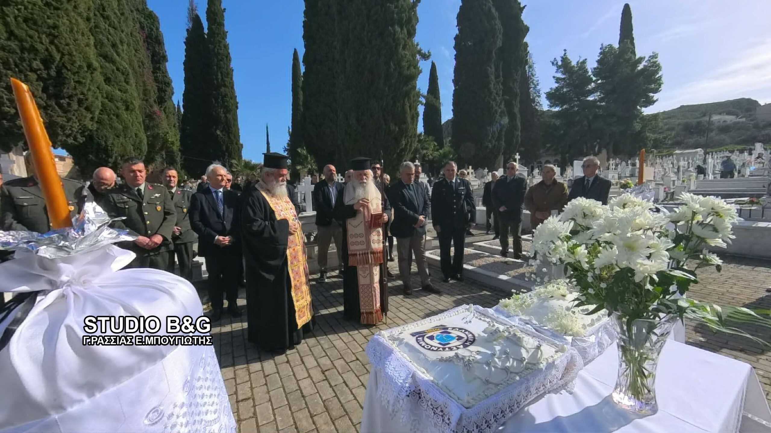 Το Ιερό Μνημόσυνο στο κοιμητήριο Ναυπλίου υπέρ πεσόντων Αξιωματικών και Οπλιτών κατά τους αγώνες του Έθνους διοργάνωσαν η Υπηρεσία Διαχείρισης Υποδομών Ναυπλίου (πρώην ΚΕΜΧ) και η Διεύθυνση Αστυνομίας Αργολίδας. Αμέσως μετά τελέστηκε Τρισάγιο και έγινε κατάθεση στεφάνων στο μνημείο των πεσόντων αστυνομικών κατά την εκτέλεση του καθήκοντος, που βρίσκεται στον αύλειο χώρο της Διεύθυνσης Αστυνομίας Αργολίδας.