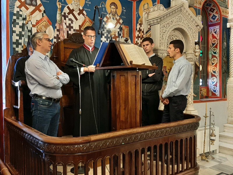 Στις Ι. Ακολουθίες έψαλλαν χοροί Ιεροψαλτών του Ι. Προσκυνήματος, υπό την διεύθυνση των κ. Θεοδοσίου Στεργιόπουλου-Πρωτοψάλτου και Καθηγητού της Σχολής Βυζαντινής Μουσικής της Ι. Μητροπόλεως και κ. Νικολάου Ενωτιάδη-Λαμπαδαρίου.