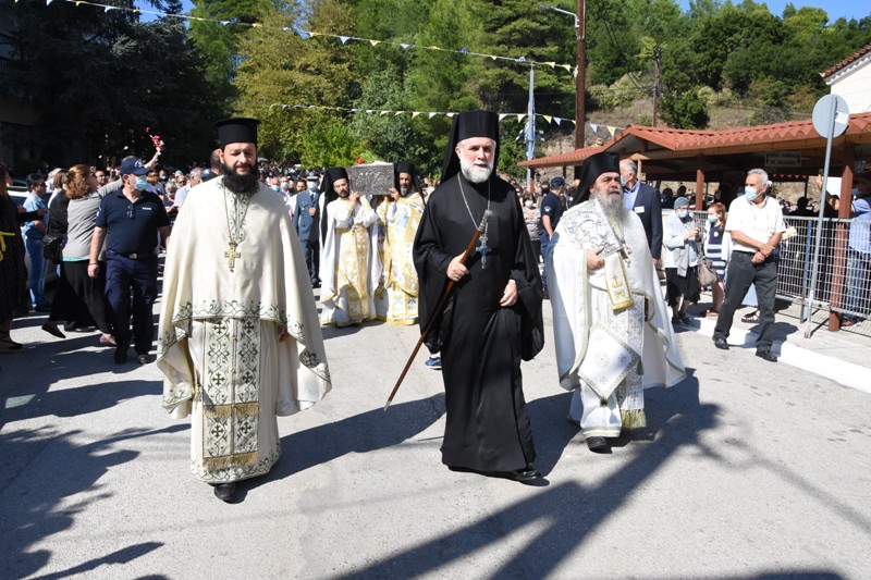 Η φετινή Πανήγυρη συνέπεσε και με την εορτή της μεταστάσεως του Αγίου Ιωάννου Θεολόγου. Έτσι, ο Σεβασμιώτατος, το απόγευμα του Σαββάτου 25 Σεπτεμβρίου 2021, μετέβη στον πανηγυρίζοντα Ι. Ναό Αγίου Ιωάννου Θεολόγου Μαντουδίου, όπου χοροστάτησε κατά τον Μεγάλο Εσπερινό, πλαισιούμενος από πολλούς Κληρικούς, με επικεφαλής τον Αρχιμ. Νικόδημο Ευσταθίου, Πρωτοσύγκελλο της Ι. Μητροπόλεως.