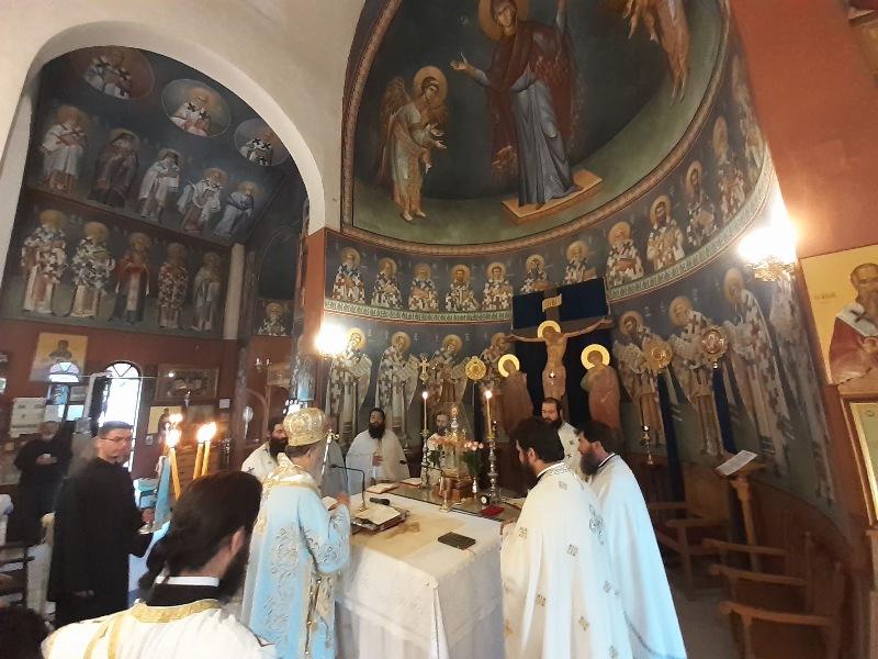 για να λειτουργήσει σε τοπικές πανηγύρεις και να επικοινωνήσει με τα πνευματικά του τέκνα, συνοδευόμενος από τον Αρχιμ. Νεκτάριο Ευγενικό και τον Διάκ. Νικόλαο Πριμηκύριο.