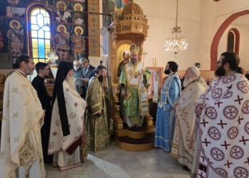 Ι.Μ. ΧΑΛΚΙΔΟΣ: Το απόγευμα της Παρασκευής 7 Αυγούστου 2020, ο Σεβασμιώτατος Μητροπολίτης Χαλκίδος κ. Χρυσόστομος, συνοδευόμενος από τον Αρχιμ. Ιωάννη Καραμούζη-Ιεροκήρυκα της Ι. Μητροπόλεως και Γραμματέα παρά τω Αρχιγραμματεί της Ιεράς Συνόδου της Εκκλησίας της Ελλάδος και τον Διάκ. Νικόλαο Πριμηκύριο, επισκέφθηκε την Ενορία Κοιμήσεως της Θεοτόκου Κυπαρισσίου Μεσσαπίων, όπου χοροστάτησε στην ιερά Ακολουθία της Παρακλήσεως προς την Υπεραγία Θεοτόκο.