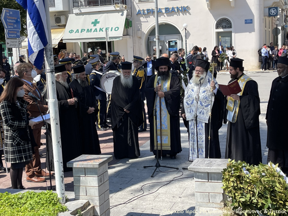 Ακολούθως ο Σεβ. Μητροπολίτης Ιεραπύτνης και Σητείας κ. Κύριλλος τέλεσε τέλεσε επιμνημόσυνη δέηση «υπέρ αιωνίου μνήμης και αναπαύσεως πάντων των πατέρων και αδελφών ημών, των ηρωικώς αγωνισαμένων και ενδόξως πεσόντων εν τοις ιεροίς του έθνους ημών αγώσι πάλαι τε και επ᾽ εσχάτων» στο Μνημείο του Άγνωστου Στρατιώτη στην κεντρική πλατεία Σητείας.