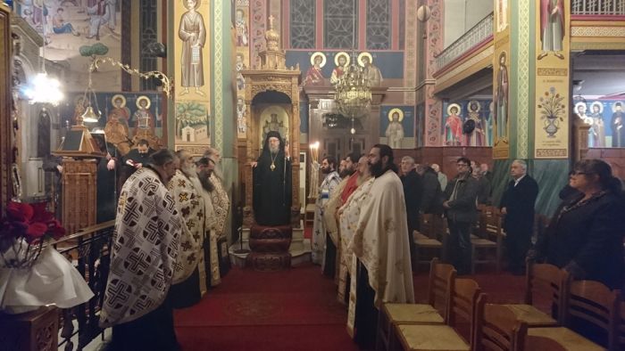 Στον Εσπερινό συμμετείχαν οι θεολόγοι – μέλη του τοπικού παραρτήματος της Ενώσεως Θεολόγων, που τιμούν ως προστάτες τους Τρείς Ιεράρχες. Στη συνέχεια, στην αίθουσα του πνευματικού κέντρου του Ναού, έκοψαν την Βασιλόπιτα για το νέο έτος και αντήλλαξαν ευχές και προβληματισμούς γύρω από τα τεκταινόμενα των ημερών. Παρευρέθηκε ο Σεβασμιώτατος Μητροπολίτης, ο οποίος ευλόγησε την Βασιλόπιτα και κάλεσε τους θεολόγους εκπαιδευτικούς σε στενότερη συνεργασία για το καλό όχι μόνο της τοπικής Εκκλησίας, αλλά και της κοινωνίας γενικότερα.