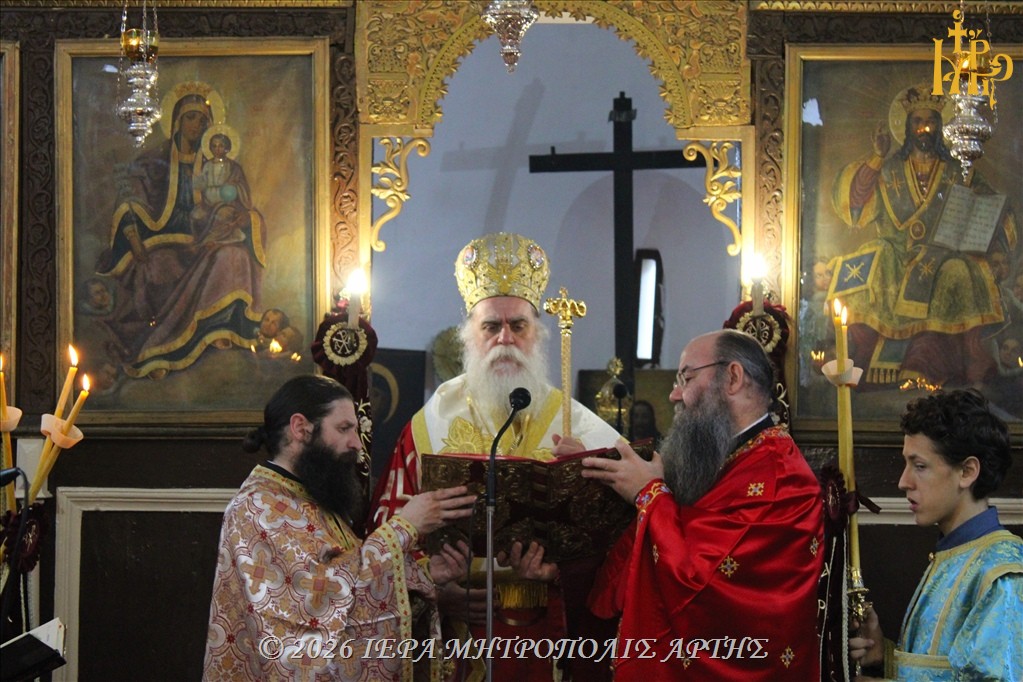 Ι.Μ.ΑΡΤΗΣ: Την Κυριακή του Πάσχα, 12 Απριλίου 2026, το απόγευμα, ετελέσθη, με Βυζαντινή λαμπρότητα, ο Εσπερινός της Αγάπης, προεξάρχοντος του Μητροπολίτου Άρτης κ. Καλλινίκου, στον Ιερό Ναό των Εισοδίων της Θεοτόκου – Αγίου Μερκουρίου, στο Επισκοπείο Άρτης.