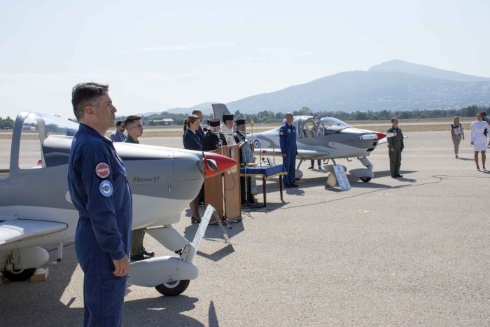 Παρουσία του Υπουργού Εθνικής Άμυνας Ευάγγελου Αποστολάκη, τελέστηκε ο αγιασμός κατά την τελετή παραλαβής των 12 νέων εκπαιδευτικών αεροσκαφών, από τον Σεβασμιώτατο Μητροπολίτη Ιλίου κ. Αθηναγόρα.