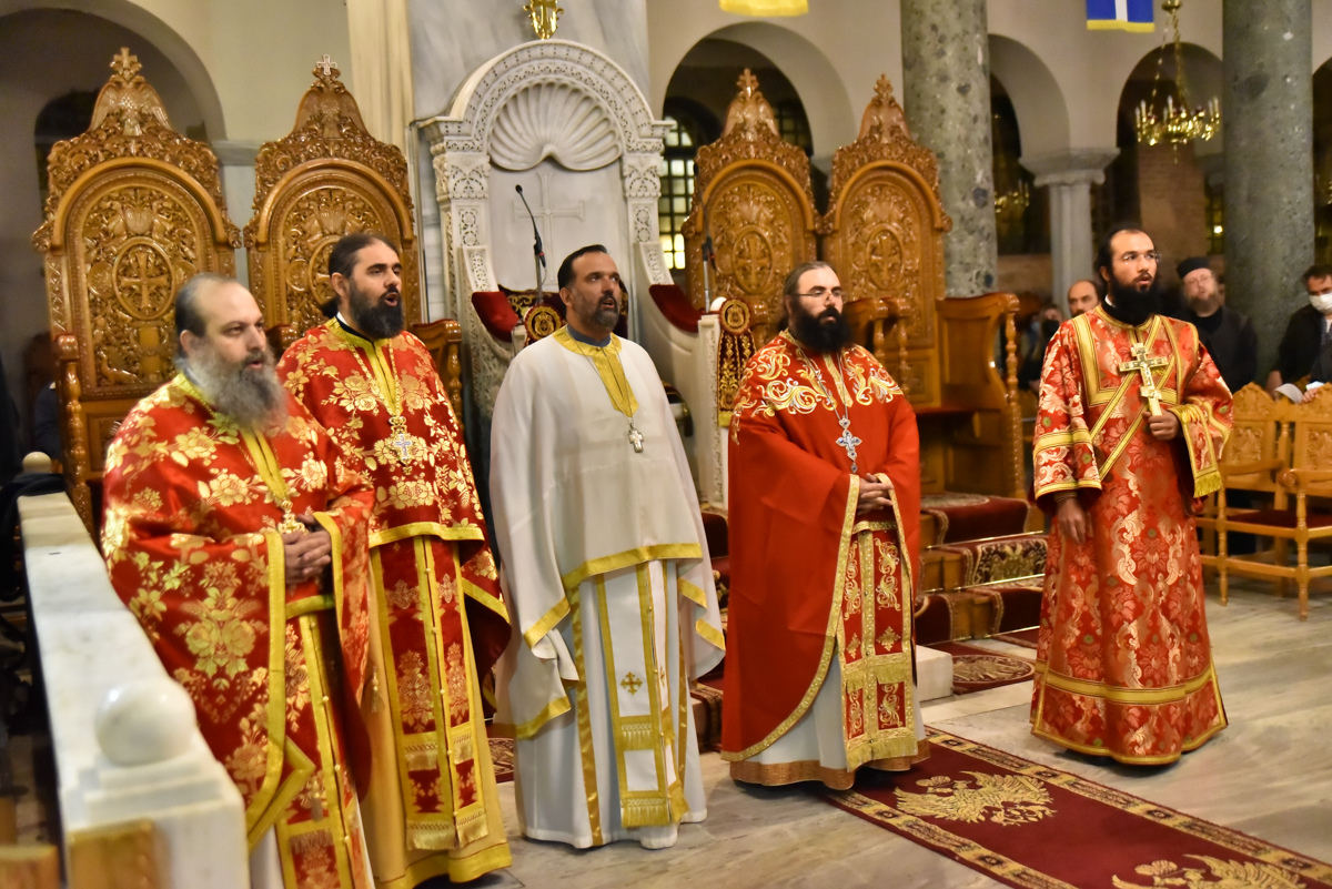 Τη λειτουργική τάξη επιμελήθηκε ο Προϊστάμενος του Ιερού Ναού του Πολιούχου, Αρχιμ. Δαμασκηνός Πέτικας, συμπαραστατούμενος από τους εφημερίους Πρωτοπρ. Γεώργιο Θεοδωρή και Πρωτοπρ. Νικόλαο Χαμαμτζόγλου.
