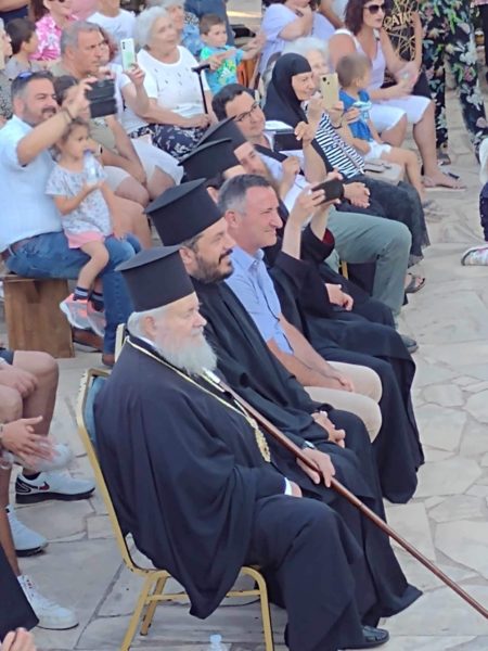 Ο Σεβασμιώτατος στον χαιρετισμό του συνεχάρη και ευχαρίστησε την Αρχηγό, την Υπαρχηγό και όλα τα στελέχη για την ευλογημένη διακονία που προσφέρουν στην κατασκήνωση.
