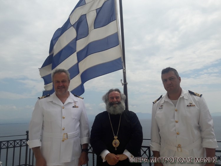 Οπως αναφέρει ανακοίνωση της Μητρόπολης Μάνης, σε συνέχεια της επισκέψεως του κυβερνήτη στο Επισκοπείο, ο Σεβ. Μητροπολίτης Μάνης κ. Χρυσόστομος Γ’, ανταπέδωσε την επίσκεψη στο πλοίο, όπου και τέλεσε αγιασμό και μίλησε κατάλληλα στο πλήρωμα.