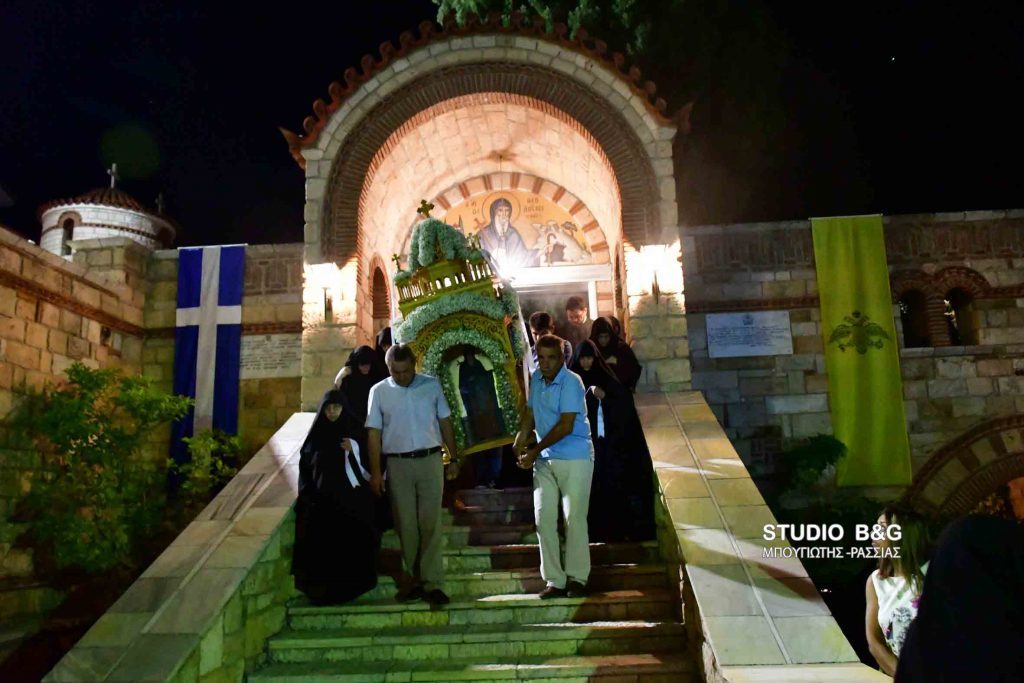 Στο τέλος του πανηγυρικού εσπερινού και μετά το θείο κήρυγμα, από τον Μητροπολίτη Καλλίνικο , ακολούθησε η λιτάνευση της ιερής εικόνας του Αγίου Θεοδοσίου καθώς και των ιερών λειψάνων πέριξ της μονής προς ευλογία των προσκυνητών, που κάθε χρόνο συρρέουν κατά χιλιάδες από όλη την Πελοπόννησο και την Αθήνα για να τιμήσουν τον Άγιο Θεοδόσιο.