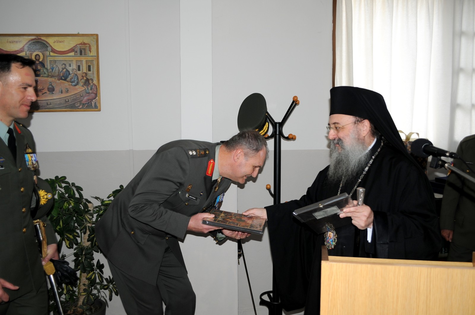Ο Σεβασμιώτατος ευχήθηκε τα δέοντα στον απελθόνα Διοικητή, Ταξίαρχο κ. Τρύφωνα Χατζηγιάννη, και τον επήνεσε και τον ευχαρίστησε για την ευσέβειά του και την αρίστη συνεργασία με την τοπική Εκκλησία, αλλά και με τους άλλους τοπικούς Φορείς, όπως ευχήθηκε και στον νέο Διοικητή του ΚΕΤΧ, Ταξίαρχο κ. Ευάγγελο Τούντα, να έχη υγιεία, δύναμη και ευλογία από τον Θεό, ώστε να εκπληρώση ως άριστα τα καθήκοντά του και να επιτύχη στο ωραίο, αλλά πολυεύθυνο έργο του για την δόξα της Πατρίδος μας.