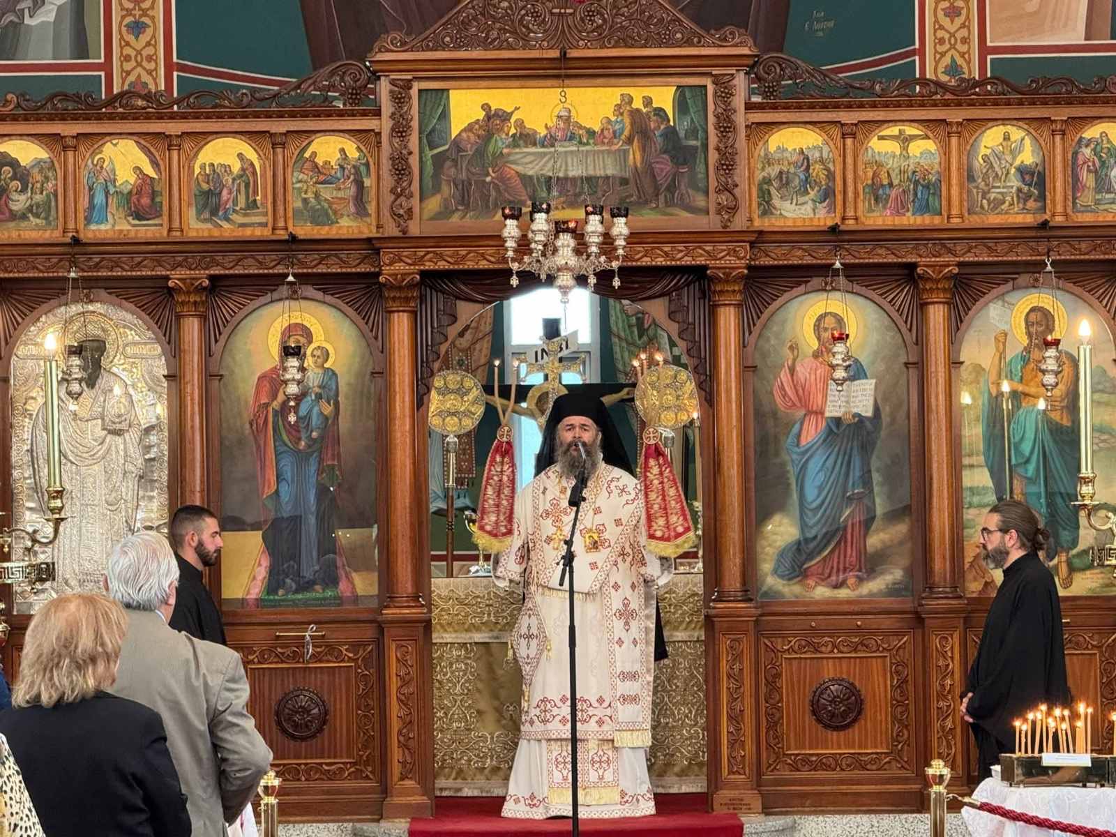 Στον Εσπερινό παρέστη πλήθος πιστών και εκπροσώπων των τοπικών αρχών, οι οποίοι ήλθαν να ευχηθούν στον Αρχιεπίσκοπο για τα ονομαστήριά του.