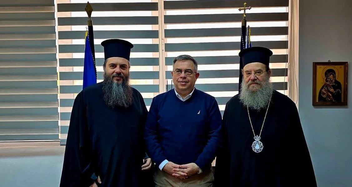 στο Γραφείο του, τον Γραμματέα της Αποκεντρωμένης Διοίκησης Μακεδονίας – Θράκης κ. Δημήτριο Γαλαμάτη, τον καταγόμενο από τον Άνω Σταυρό που υπάγεται στην υπ’ αυτόν Ιερά Μητρόπολη και υπέβαλε τα σέβη του και τις ευχές του για ευόδωση του έργου του και των υψηλών στόχων που έχει θέσει, διακονώντας την Πατρίδα και τον Λαό από τη νευραλγική αυτή θέση.