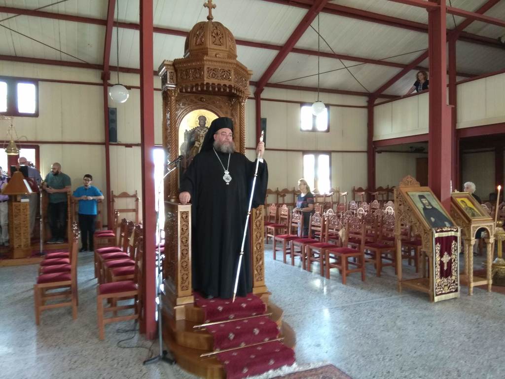 Με το πέρας της Θείας Λειτουργίας ο προϊστάμενος του Ναού, Πανοσιολ. Αρχιμ. Ευθύμιος Θεοδωρόπουλος προσφώνησε και καλωσόρισε τον Μητροπολίτη, τον ευχαρίστησε για την επίσκεψή του και του ευχήθηκε κάθε καλό στην Αρχιερατική του διακονία.
