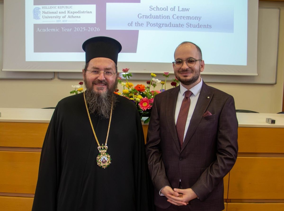 Ι.Μ.ΚΙΛΚΙΣΙΟΥ: Την Τρίτη 31 Μαρτίου 2026, ο Μητροπολίτης Πολυανής και Κιλκισίου κ. Βαρθολομαίος παρευρέθη στην Νομική Σχολή του Πανεπιστημίου Αθηνών, προκειμένου να συμμετάσχει στην χαρά του αγαπητού του πνευματικού τέκνου και ασκούμενου δικηγόρου, κ. Δημητρίου Ράπτη, ο οποίος ολοκλήρωσε με άριστα τις μεταπτυχιακές του σπουδές στο Δημόσιο Δίκαιο, καταλαμβάνοντας την πρώτη θέση.