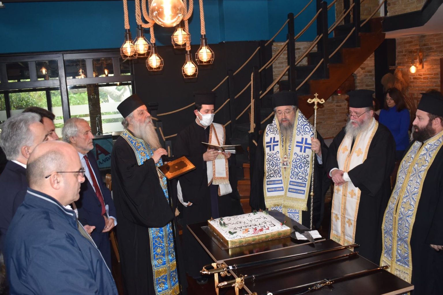 Την πίτα ευλόγησε ο Μητροπολίτης Λευκάδος κ. Θεόφιλος, πλαισιωμένος από τον Καθηγούμενο της Ιεράς Μονής Φανερωμένης, Αρχιμανδρίτη π. Νικηφόρο Ασπρογέρακα και άλλους κληρικούς της Ιεράς Μητροπόλεως. Μεταξύ των μελών και φίλων του Παραρτήματος, την εκδήλωση τίμησαν με τη παρουσία τους ο Βουλευτής Λευκάδας κ. Καββαδάς Αθανάσιος, ο Δήμαρχος Λευκάδας κ. Βεργίνης Ξενοφών, ο Αντιδήμαρχος κ. Σκληρός Φίλιππος, ο Αντιδήμαρχος κ. Σολδάτος Γεώργιος, ο Αστυνομικός Δντής Λευκάδας Ταξχος κ. Σπυρόπουλος Κωνσταντίνος, ο Δκτής 4ης ΜΣΕΠ Επισμηναγός κ. Στασινός Βασίλειος, ο Δκτής Π.Υ Λευκάδας Πύραρχος κ. Καλαιτζίδης Πρόδρομος, ο εκπρόσωπος του Λιμενάρχη Λευκάδας Πλωτάρχης κ. Προκοπίου Δημήτριος, ο Πρόεδρος του Επιμελητηρίου Λευκάδας κ. Σκιαδαρέσης Σωτήριος, ο Πρόεδρος του Παραρτήματος Πρέβεζας της ΕΑΑΣ κ. Γιώτης Ιωάννης μετά μελών του Τ.Σ, ο Πρόεδρος του Παραρτήματος ΕΑΑΝ Πρέβεζας κ. Παππάς Διονύσιος, ο Αντιπρόεδρος Εφέδρων Αξκών Ν. Λευκάδας κ. Βετούλας Θεόδωρος και ο Πρόεδρος Αποστράτων Συνδέσμου Σωμάτων Ασφαλείας Ν. Λευκάδας κ. Οικονόμου Ευστάθιος.