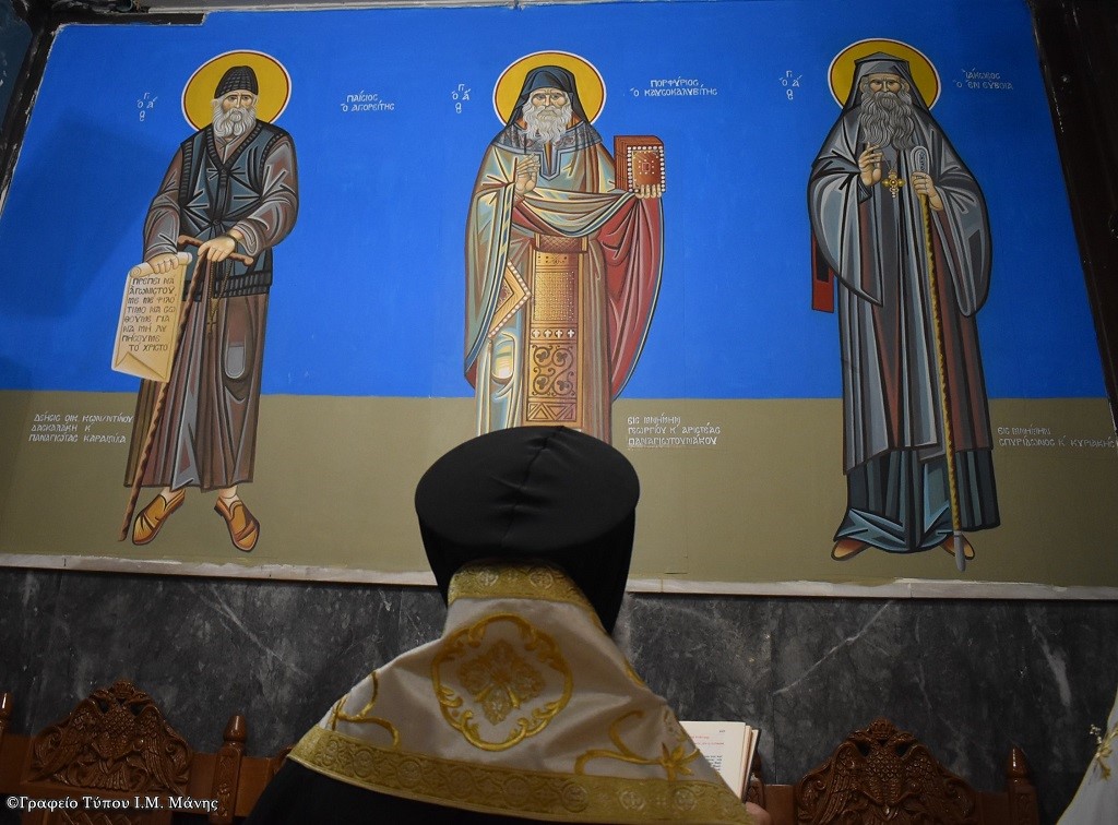 όπου, μετά τον Παρακλητικό Κανόνα προς την Υπεραγία Θεοτόκο, διάβασε ειδική ευχή για καινούργιες αγιογραφίες του Ι. Ναού και συνεχάρη τους δωρητές και την αγιογράφο.