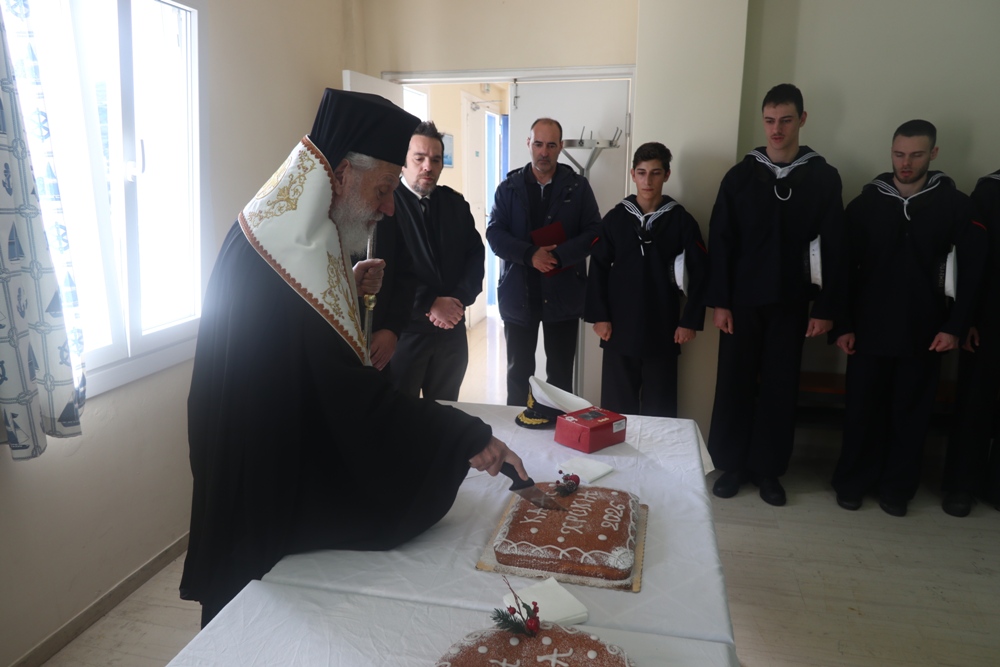 των Αξιωματικών, των Στελεχών και των υπηρετούντων εκεί Στρατευσίμων ευλόγησε, ως κατ’ έτος, την πίτα του Αγίου Βασιλείου, ευχήθηκε στους στρατευσίμους για την τωρινή αλλά και για την μελλοντική ζωή τους, καθώς στα τα στελέχη της Μονάδας, τα οποία και συνεχάρη για την εύορκο επιτέλεση της αποστολής τους και για την την καλή μαρτυρία της φιλοπατρίας και της κοινωνικής ευθύνης που προσφέρει στο λαό της Σύρου.