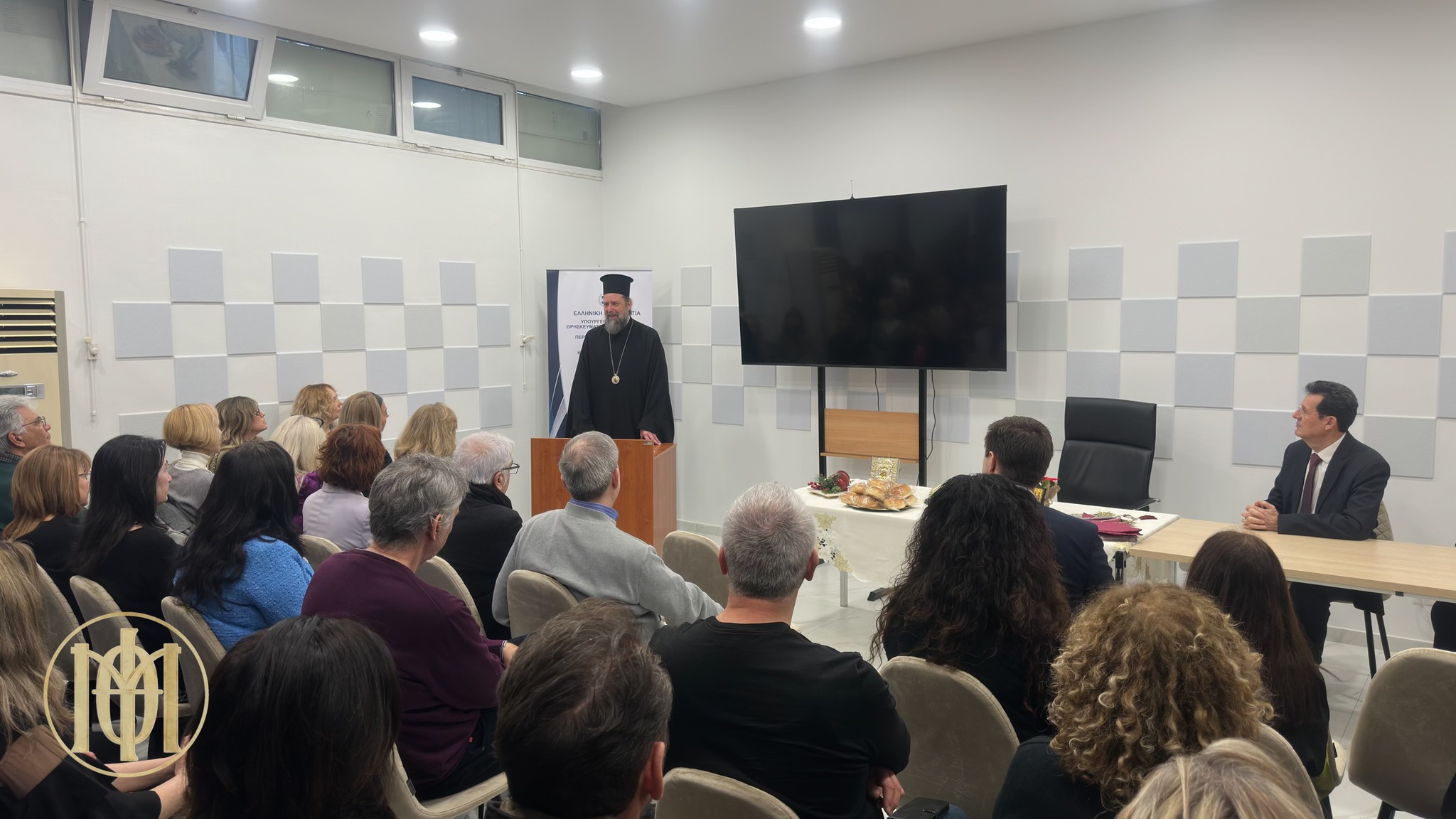 Ο Μητροπολίτης, απευθυνόμενος στον Διευθυντή και σε πολλούς Εκπαιδευτικούς της Πρωτοβάθμιας Εκπαίδευσης, μίλησε για τους Τρεις Μεγίστους Φωστήρες της Εκκλησίας μας και εν συνεχεία ευλόγησε την πρωτοχρονιάτικη βασιλόπιτα.