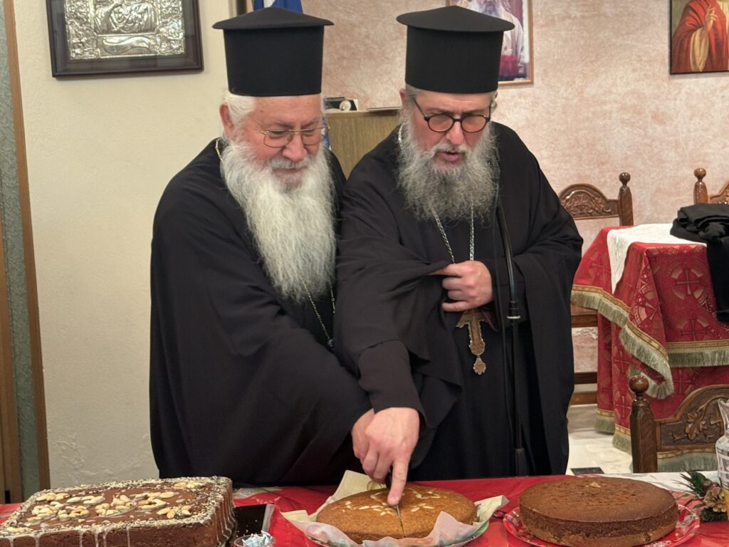 Το θείο λόγο κήρυξε ο ιεροκήρυκας πανοσ. αρχιμ. π. Ιερώνυμος Κυριαζής. Μετά τον Εσπερινό ο Μητροπολίτης ευλόγησε τη βασιλόπιτα της Ενορίας Παναγίας Σκριπούς στην αίθουσα του Εκκλησιαστικού Γηροκομείου της Ενορίας, που βρίσκεται δίπλα στο Παρεκκλήσιο του Αγίου Ιωάννου, και ευχήθηκε σε όλους τους παρευρισκόμενους για το νέο έτος.