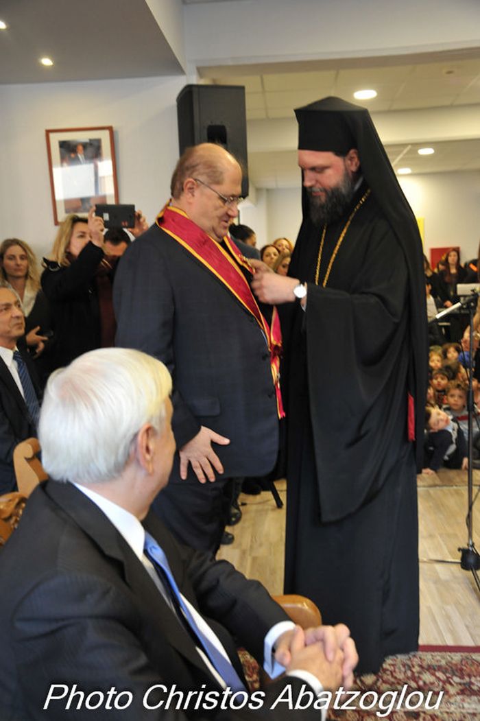 Στη συνέχεια ο Σεβασμιώτατος Μητροπολίτης τίμησε για την προσφορά του τον κ. Sabbagh και του απέμεινε την ανώτατη τιμητική διάκριση της Ιεράς Μητροπόλεως, δηλαδή το παράσημο του Πολιούχου αυτής Ιερομάρτυρος Αγίου Γεωργίου του Νεαπολίτου.