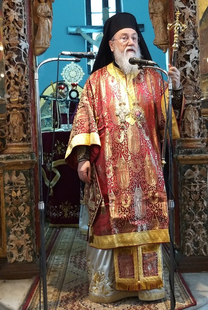 Την Κυριώνυμο ημέρα της εορτής κατά το Αρχιερατικό Πανηγυρικό Συλλείτουργο, προεξήρχε ο Σεβασμιώτατος Μητροπολίτης Κορίνθου κ.κ. Διονύσιος, ορθοτομώντας γλαφυρά και σαγηνευτικά τον Θείον Λόγον, με την πλούσια Θεολογική και Πατερική γνώση που τον διακατέχει, πλαισιούμενος από τον Σεβασμιώτατο Μητροπολίτη μας κ.κ. Γερμανόν, καθώς επίσης τους Θεοφιλεστάτους Επισκόπους Ανδρούσης κ.κ. Κωνστάντιον και Ωλένης κ.κ. Αθανάσιον.