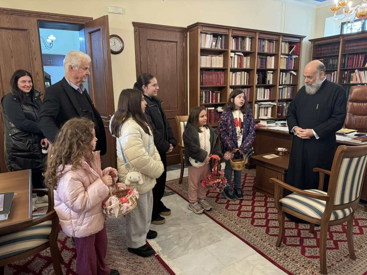 με αφορμή την επίσκεψη κοριτσιών που έψαλαν τα παραδοσιακά κάλαντα του Λαζάρου στον Μητροπολίτη Θεσσαλιώτιδος κ. Τιμόθεο, μεταφέροντας το χαρμόσυνο μήνυμα της επικείμενης Αναστάσεως.