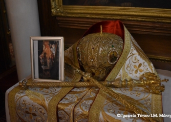 Με το πέρας της Θείας Λειτουργίας τελέσθηκε Δέηση ενώπιον της Θαυματουργού Εικόνος και Τρισάγιο στις προτομές του Εθνομάρτυρος Επισκόπου Κορώνης Γρηγορίου Μπίστη και του αειμνήστου Μητροπολίτου Μεσσηνίας Χρυσοστόμου Δασκαλάκη.