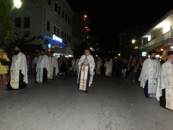 Στην Λιτανευτική πομπή στους δρόμους της πόλεως του Λουτρακίου συμμετείχαν χιλιάδες πιστών με πρώτους τον Γενικό Γραμματέα του Υπουργείου Υποδομών και Μεταφορών κ. Γεώργιος Δέδες, τους Βουλευτές του Νομού μας, τον Περιφερειάρχη, τους Τοπικούς Άρχοντες και τους εκπροσώπους των Στρατιωτικών, Αστυνομικών και λοιπών Αρχών του Τόπου μας. Στο κήρυγμά του, στην κεντρική πλατεία της πόλεως, ο Σεβ. Μητροπολίτης μας αναφέρθηκε αρχικά στον ιερό θεσμό της οικογένειας. Έναν θεσμό που συνεχώς βάλεται από εκσυχρονιστικές ιδέες, που προσπαθούν να τον «απλουστεύσουν» και να του δώσουν νέες ονομασίες και δομές, ενώ στην συνέχεια αναφέρθηκε στο πως οι γονείς οφείλουν να ανατρέφουν και να εκπαιδεύουν τα παιδιά τους «εν παιδεία και νουθεσία Κυρίου», ώστε να δώσουν στην Κοινωνία ολοκληρωμένους ανθρώπους. Ολοκληρώνοντας ευχήθηκε η Παναγία η «Γιάτρισσα» να θεραπεύσει τα προβλήματα μας και να μας βοηθήσει, ώστε να παραμείνουμε εδραίοι στην Πίστη του Χριστού και στις Παραδόσεις της Ελληνικής Κοινωνίας μας. Μετά το πέρας της Ι. Λιτανείας ο σεπτός Ποιμενάρχης μας ευχαρίστησε όλους όσους συντέλεσαν στην άψογη διοργάνωση των Πανηγυρικών Εκδηλώσεων, τον Στρατό, την Αστυνομία, τον Δήμο, την Φιλαρμονική, το Εκκλησιαστικό Συμβούλιο και όλους τους ευλαβείς προσκυνητές που συμμετείχαν σε αυτές, και ευθύς αμέσως όλοι έψαλαν τον Εθνικό Ύμνο που παιάνιζε η φιλαρμονική. Στην συνέχεια τελέσθηκε Ιερά Αγρυπνία με την συμμετοχή πλήθους πιστών.