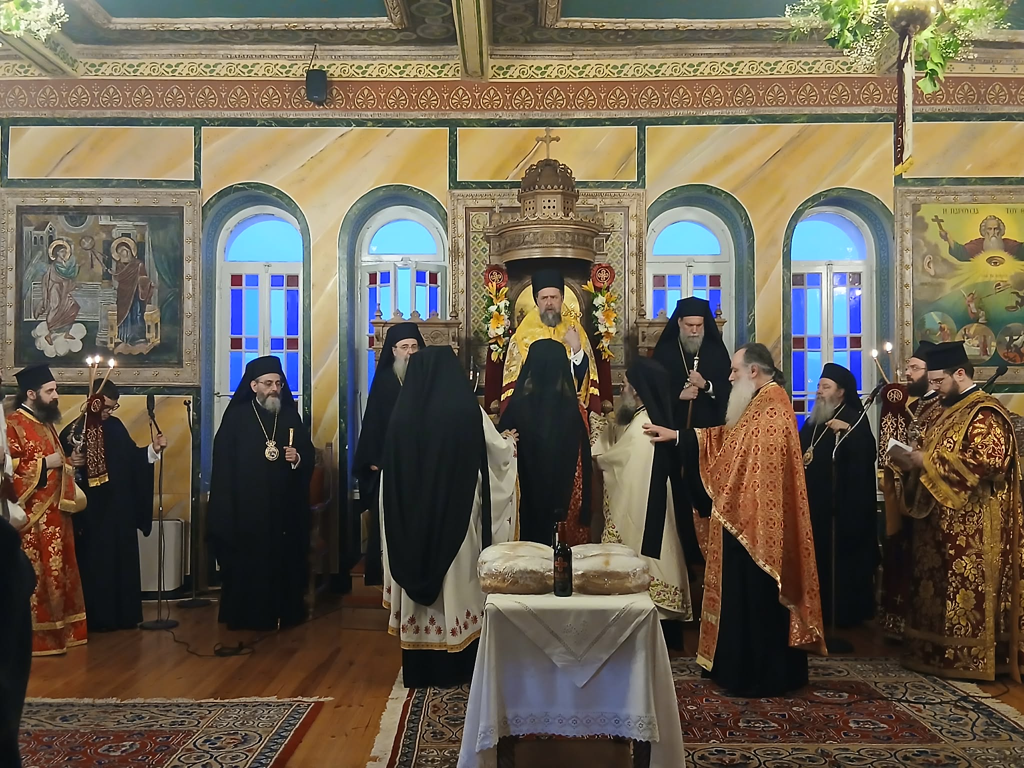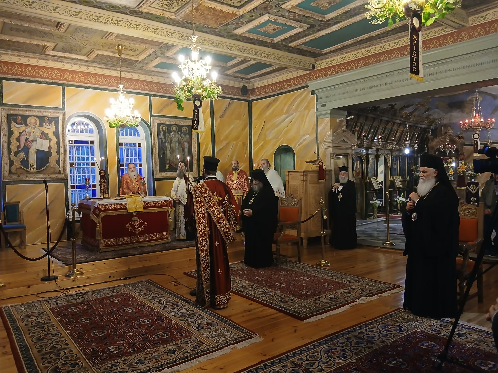 Η ακολουθία του Εσπερινού τελέσθηκε χοροστατούντος του Σεβασμιωτάτου Μητροπολίτου Θεσσαλονίκης κ. Φιλοθέου, ο οποίος κήρυξε τον θείο λόγο, συγχοροστατούντων των Σεβασμιωτάτων Μητροπολιτών πρώην Καλαβρύτων και Αιγιαλείας κ. Αμβροσίου, Πατρών κ. Χρυσοστόμου, Νέας Ιωνίας, Φιλαδελφείας, Ηρακλείου, Χαλκηδόνος κ. Γαβριήλ, Παραμυθίας, Φιλιατών και Γηρομερίου κ. Σεραπίωνος, του Θεοφιλεστάτου Επισκόπου Κερνίτσης κ. Χρυσάνθου, του Θεοφιλεστάτου Επισκόπου Ευμενείας κ. Ειρηναίου και του Σεπτού Ποιμενάρχου, Σεβασμιωτάτου Μητροπολίτου Καλαβρύτων και Αιγιαλείας κ. Ιερωνύμου.