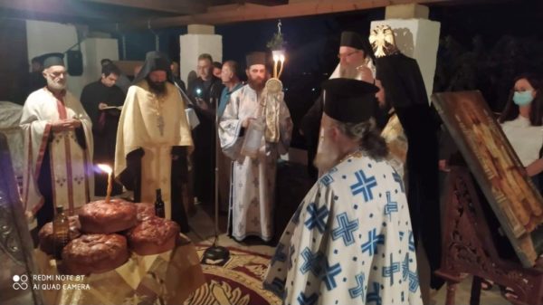 Ο Σεβασμιότατος ευχήθηκε στους πατέρες της Μονής π. Ιάκωβο, π. Μελέτιο και π. Τιμόθεο αλλά και στους πιστούς, που ανηφόρισαν στο μοναστήρι ως ”αύρα λεπτή”, να έρθει η ευλογία του Θεού στα καλά τους έργα και στις οικογένειές τους.