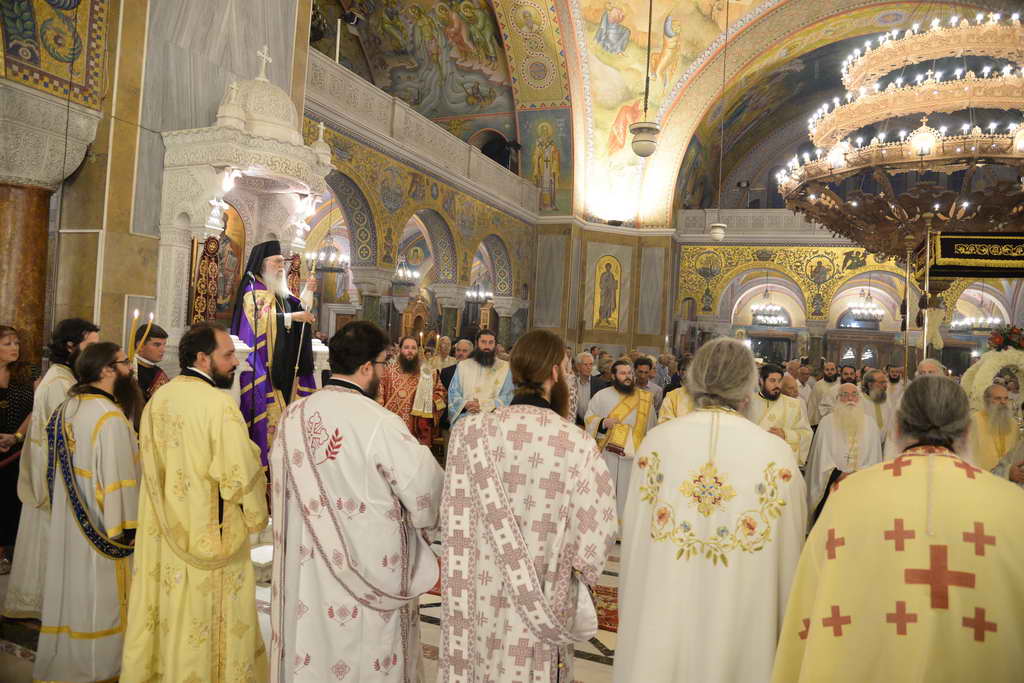 Στόν πανηγυρικό Ἑσπερινό ἐχοροστάτησε ὁ Θεοφιλέστατος Ἐπίσκοπος Μεθώνης κ. Κλήμης, Ἀρχιγραμματεύς τῆς Ἱερᾶς Συνόδου τῆς Ἐκκλησίας τῆς Ἑλλάδος, συγχοροστατούντων τῶν Σεβασμιωτάτων Μητροπολιτῶν: Διαυλείας κ. Ἀλεξίου, Γρεβενῶν κ. Δαυίδ, Πατρῶν κ. Χρυσοστόμου καί τοῦ Θεοφιλεστάτου Ἐπισκόπου Κερνίτσης κ. Χρυσάνθου.