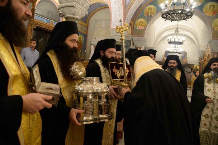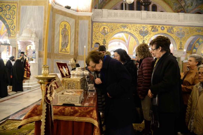 Σύμφωνα με ανακοίνωση της Μητρόπολης, στα πρόπυλα του Ιερού Ναού έγινε η υποδοχή Λειψάνων των Αχαιών Αγίων οι οποίοι τιμώνται από την τοπική Εκκλησία και εν συνεχεία ετελέσθη ο Πανηγυρικός Εσπερινός, χοροστατούντος του Σεβασμιωτάτου Μητροπολίτου Πατρών κ.κ. Χρυσοστόμου και συγχοροστατούντος του Θεοφιλεστάτου Επισκόπου Κερνίτσης κ. Χρυσάνθου, τη συμμετοχή πολλών Ιερέων και Διακόνων της Ιεράς Μητροπόλεως.