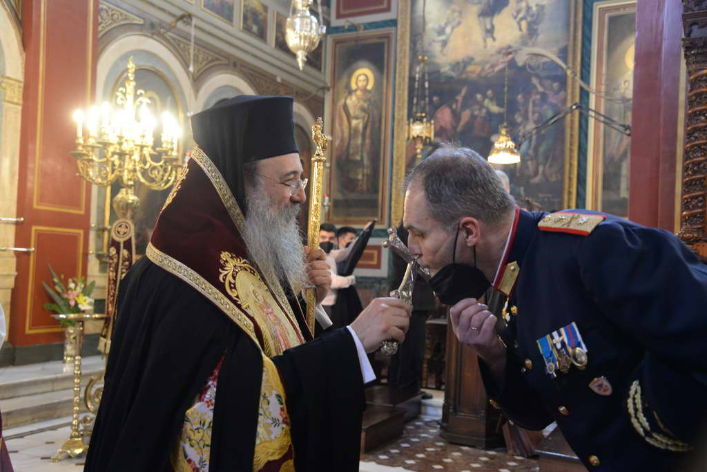 Μέ έμφαση ανεφέρθη στό ρόλο καί στίς θυσίες τής Εκκλησίας, η οποία από τήν αρχή πρωτοστάτησε στούς αγώνες γιά τήν Ελευθερία, από τούς κατά καιρούς Οικουμενικούς Πατριάρχας, μέχρι καί τόν τελευταίο Καλόγερο σέ όποιαν άκρη τής Ελληνικής Πατρίδος.