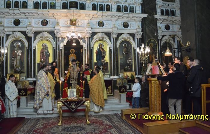 Οπως αναφέρει ανακοίνωση της Μητρόπολης, την Θεία Λειτουργία τέλεσαν οι Ιερείς του Ναού. Στο τέλος της Θείας Λειτουργίας στις 12 ακριβώς το βράδυ, ήχησαν οι καμπάνες για την ανατολή του νέου χρόνου και ο Μητροπολίτης κ. Άνθιμος ευλόγησε την πρωτοχρονιάτικη πίτα και την μοίρασε στο πολυπληθές εκκλησίασμα ευχόμενος για την νέα χρονιά στον καθένα ξεχωριστά.