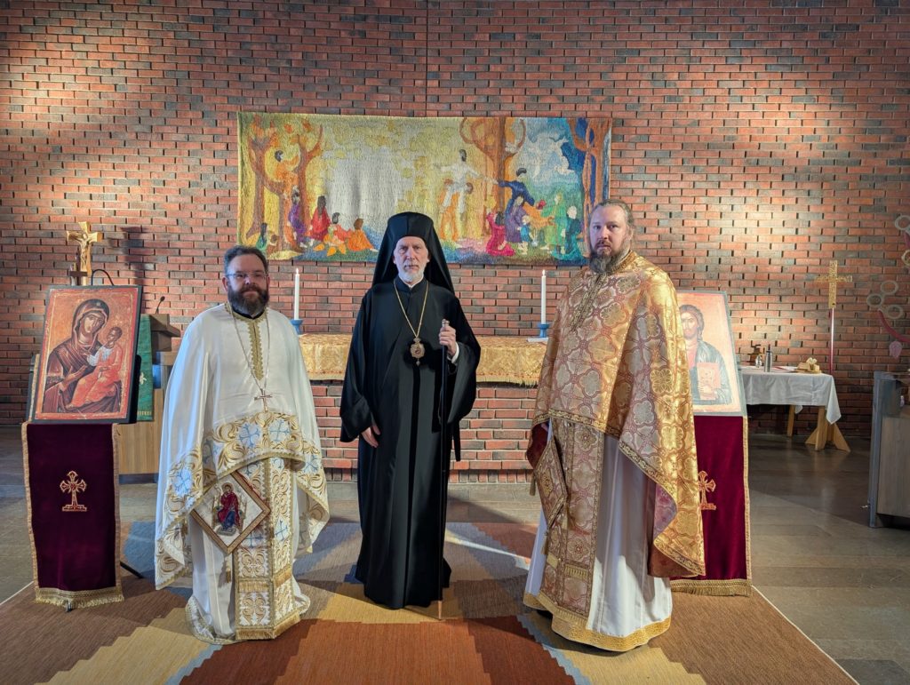 συνοδευόμενος από τον Πανοσιολ. Αρχιμανδρίτη κ. Βαρθολομαίο Ιατρίδη, Εφημέριο του Καθεδρικού Ναού Αγίου Γεωργίου Στοκχόλμης, και τον Αιδεσιμολ. Οικονόμο κ. Γεώργιο Αρβανιτίδη, Εφημέριο της Ενορίας Αγίων Δημητρίου και Νέστορος Örebro Σουηδίας, χοροστάτησε στην ευγενώς παραχωρηθείσα υπό της Λουθηρανικής Εκκλησίας Gideonsbergskyrkan, στην πόλη Βεστερός της Σουηδίας.