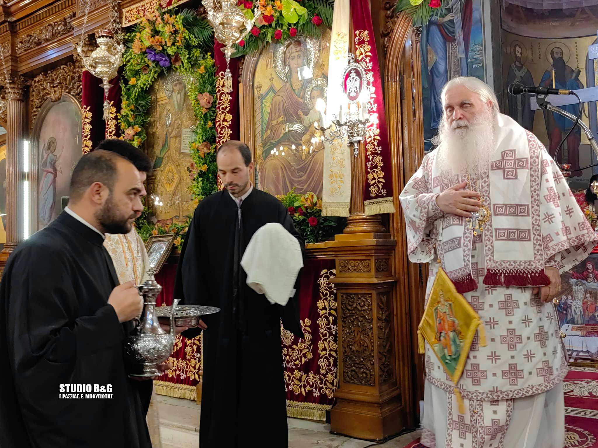 Ανήμερα της εορτής του Αγίου τελέσθηκε Πολυαρχιερατική Θεία Λειτουργία χοροστατούντος του Μητροπολίτη Παροναξίας Καλλινίκου ,ο οποίος κήρυξε και τον θείο λόγο και συγχοροστατούντων των Μητροπολιτών Άρτης Καλλινίκου, Κίτρους, Κατερίνης και Πλαταμώνος Γεωργίου και Αργολίδας Νεκταρίου.