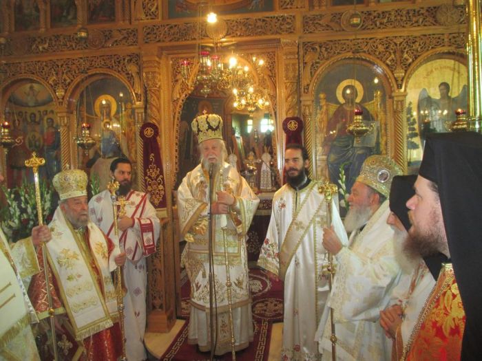 Στον όρθρο χοροστάτησε ο Αρχιγραμματέας της Ιεράς Συνόδου της Εκκλησίας της Ελλάδος Θεοφιλέστατος Επίσκοπος Ωρεών κ. Φιλόθεος εν συνεχεία στο αρχιερατικό συλλείτουργο προεξήρχε ο εορτάζων Ιεράρχης Μητροπολίτης Καρυστίας και Σκύρου κ. Σεραφείμ έλαβαν ακόμη μέρος οι Σεβασμιώτατοι Μητροπολίτες Ειρηνουπόλεως κ. Νίκανδρος, Χαλκίδος κ. Χρυσόστομος και ο Αρχιγραμματέας της Ιεράς Συνόδου Επίσκοπος Ωρεών κ. Φιλόθεος ο Πρωτοσύγκελλος της Ιεράς Μητρόπολης Πανοσ Αρχιμ Νικόδημος Πόγκας καθώς και Ιερείς απο την Μητρόπολη Καρυστίας και οι Διάκονοι Στυλιανός Πεταχτής και Νικόλαος Πριμηκύριος.