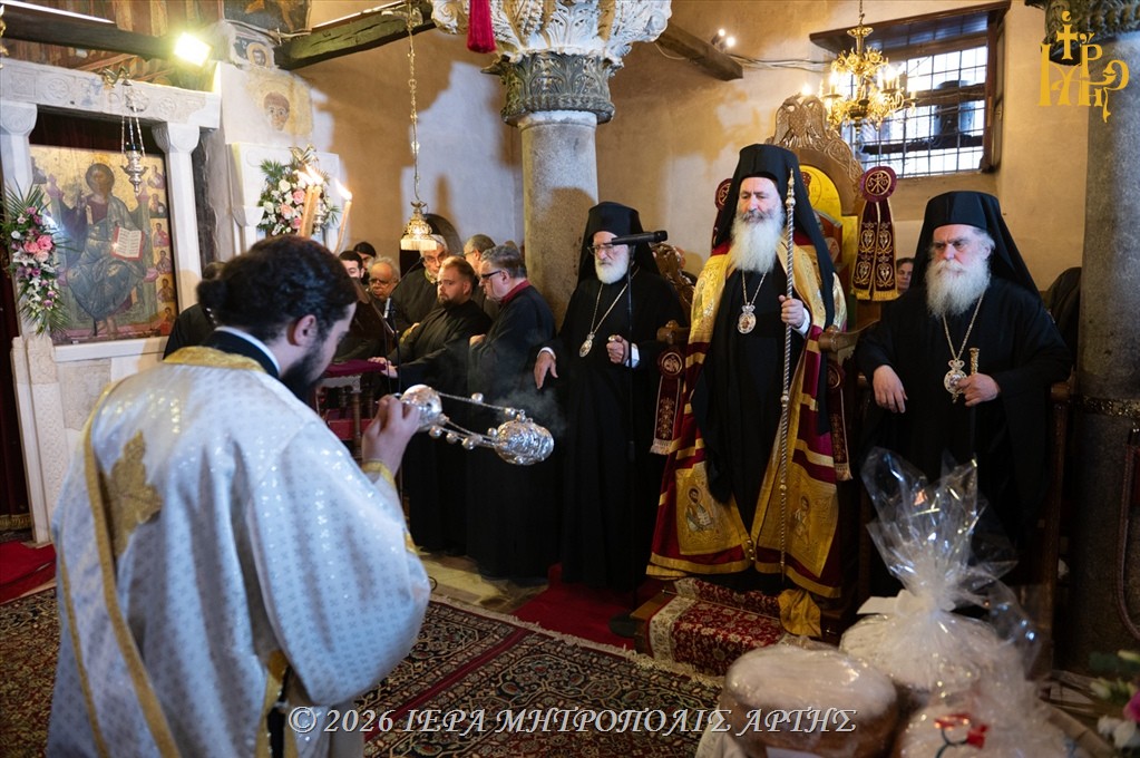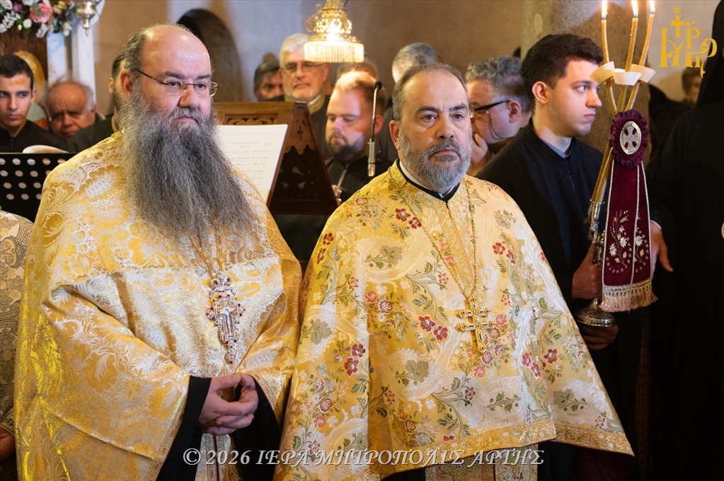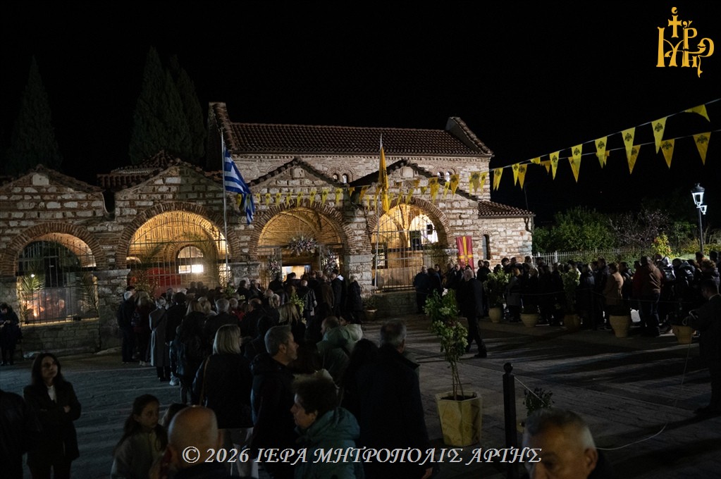 Άρτα: Την Τρίτη 10 Μαρτίου 2026, το απόγευμα, επί τη εορτή της Αγίας Θεοδώρας, της Βασίλισσας και Πολιούχου Άρτης, ετελέσθη Μέγας πολυαρχιερατικός Εσπερινός στον φερώνυμο Ιερό Ναό της Αγίας, στην πόλη της Άρτας.
