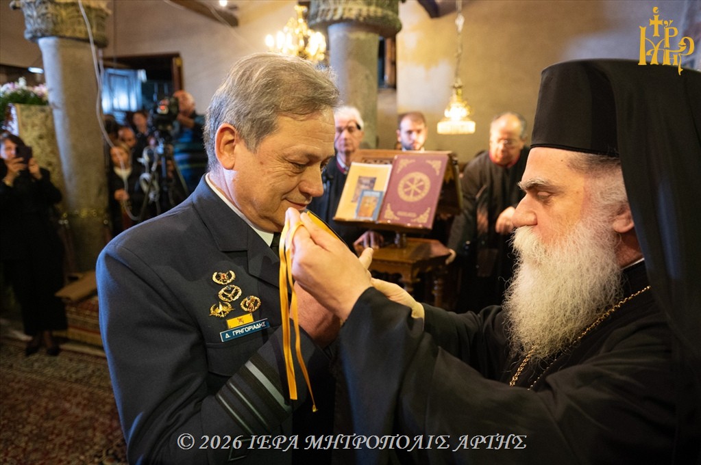Ιδιαίτερο συμβολισμό είχε η παρουσία του Αρχηγού του Γενικού Επιτελείου Αεροπορίας, Αντιπτεράρχου (Ι) Δημοσθένη Γρηγοριάδη, στον οποίο ο Σεβασμιώτατος Μητροπολίτης Άρτης κ. Καλλίνικος απένειμε την υψίστη τιμή της Ιεράς Μητροπόλεως Άρτης, τον Χρυσό Σταυρό της Αγίας Θεοδώρας.