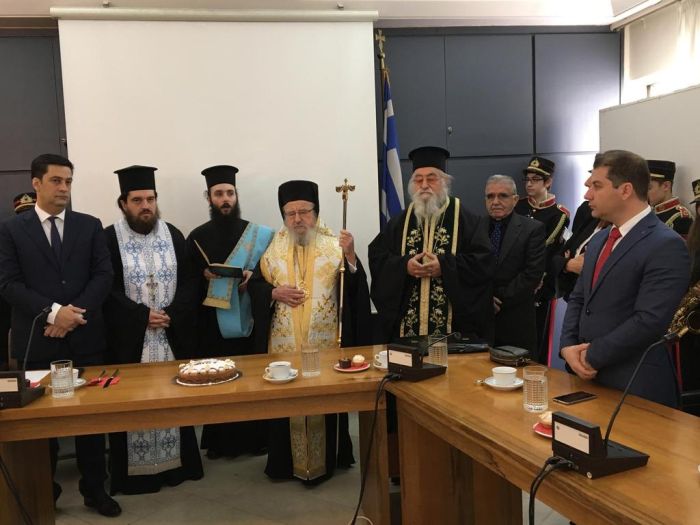 Αμέσως μετά, ο Σεβασμιώτατος Μητροπολίτης Αιτωλίας και Ακαρνανίας κ.Κοσμάς ευλόγησε την Βασιλόπιτα στο Δημαρχείο Αγρινίου όπου παρέστησαν ο Δήμαρχος, ο πρόεδρος του δημοτικού συμβουλίου, αντιδήμαρχοι, μέλη της δημοτικής αρχής, εκπρόσωποι Σωμάτων Ασφαλείας, αρχών και φορέων. Την όλη εκδήλωση πλαισίωσε η παρουσία της μεγάλης φιλαρμονικής του δήμου Αγρινίου η οποία παρουσίασε επίκαιρα τραγούδια.