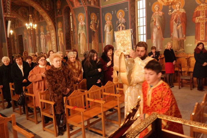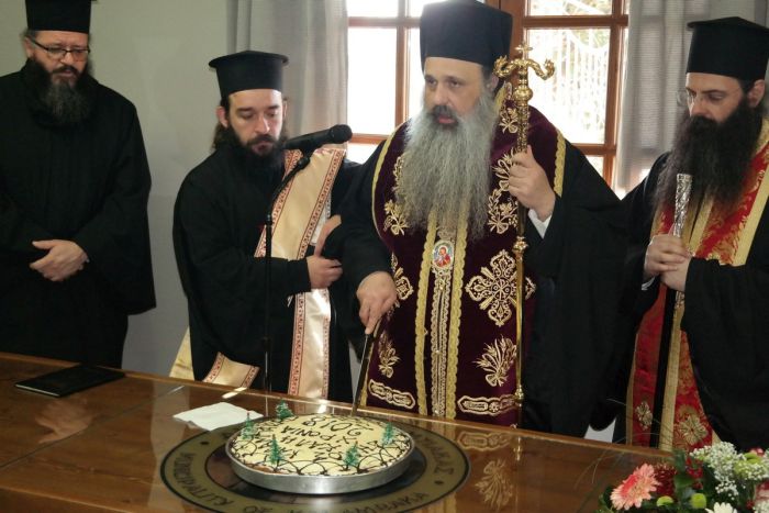 Μετά το πέρας της Θ.Λειτουργίας τελέστηκε επισήμη Δοξολογίας διά την πρώτην του έτους, ενώ αμέσως μετά ο Σεβασμιώτατος μετέβη στο Δημαρχείο της πόλεως όπου ευλόγησε την πίτα του Αγίου Βασιλείου”.