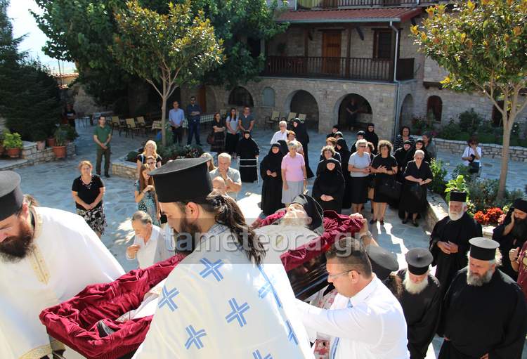 Αμέσως μετά τελέστηκε τρισάγιο στο Καθολικό της Ιεράς Μονής, όπου και έχει τεθεί σε προσκύνημα.