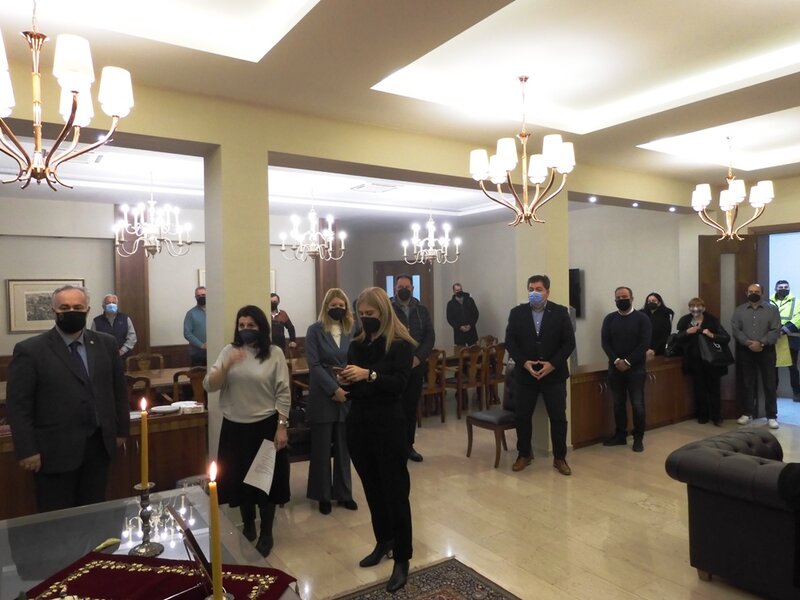 Ι.Μ. ΣΕΡΡΩΝ: Την ακολουθία του Αγιασμού και την κοπή της πατροπαράδοτης αγιοβασιλειόπιτας, ετέλεσε σήμερα, Πέμπτη 13 Ιανουαρίου 2022, ο Σεβ. Μητροπολίτης Σερρών και Νιγρίτης κ. Θεολόγος, κατόπιν σχετικής προς τούτο προσκλήσεως, στο Δημαρχείο Σερρών, παρουσία του Δημάρχου Σερραίων κ. Αλ. Χρυσάφη, του Προέδρου, των μελών του Δημοτικού Συμβουλίου Σερρών και των εργαζομένων στις υπηρεσίες του Δήμου.