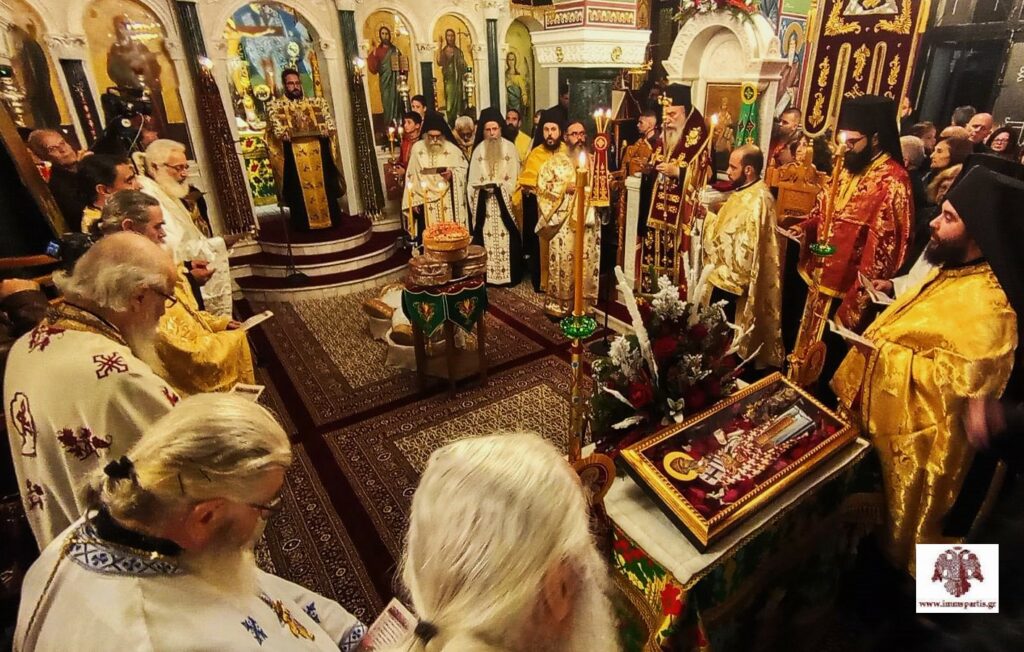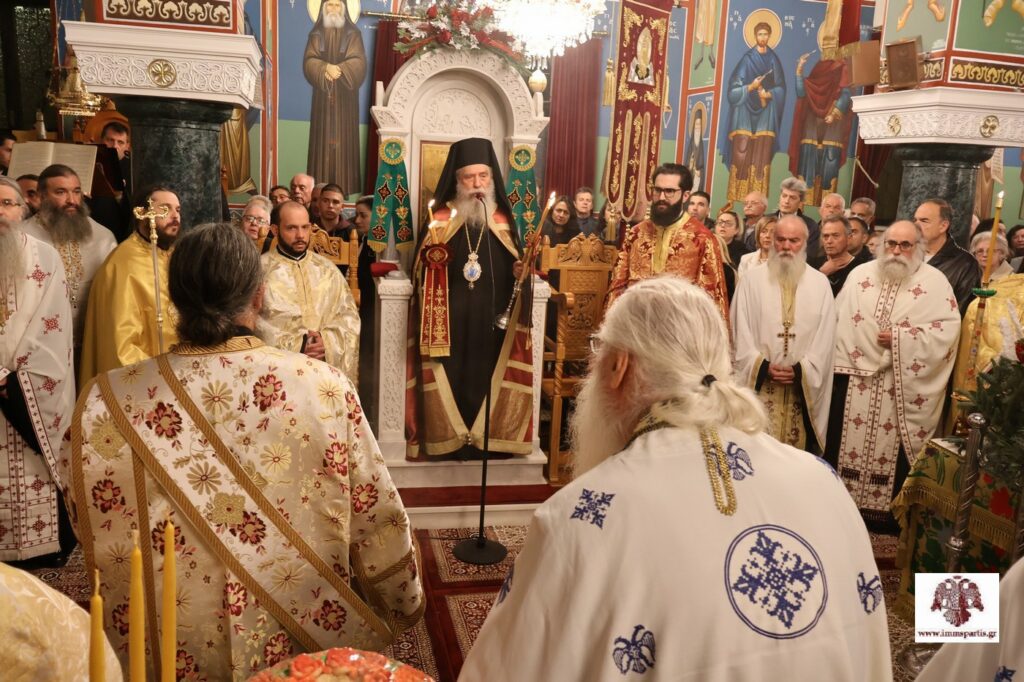 Το απόγευμα της παραμονής της εορτής, Πέμπτη 11 Δεκεμβρίου, τελέσθηκε ο Μέγας Πανηγυρικός Αρχιερατικός Εσπερινός μετ’ αρτοκλασίας, χοροστατούντος του Σεβασμιωτάτου Μητροπολίτου κ. Ευσταθίου. Στην ακολουθία συμμετείχε πλειάδα κληρικών από την ευρύτερη περιοχή, δίνοντας ιδιαίτερο πανηγυρικό χαρακτήρα στη σύναξη, ενώ το εκκλησίασμα γέμισε τόσο τον Ναό όσο και τον περιβάλλοντα χώρο.