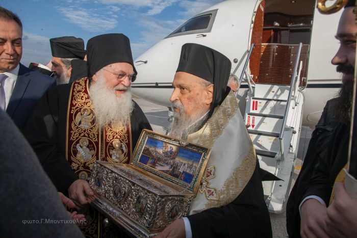 Η Αγία Ζώνη έφτασε στην 110 Π.Μ. με αεροσκάφος, και κατά την προσγείωσή της την υποδέχτηκαν ο Μητροπολίτης Λαρίσης και Τυρνάβου κ. Ιγνάτιος, αλλά και επίσημοι προσκεκλημένοι.