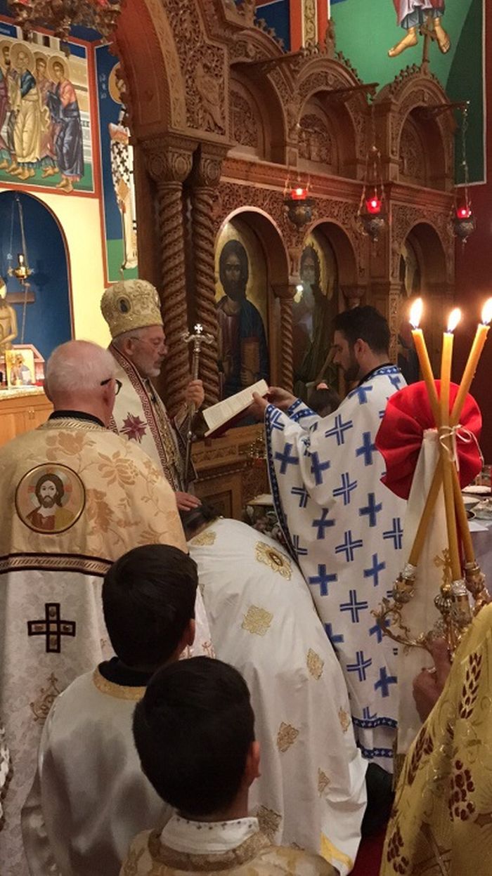 Στο τέλος της θείς λειτουργία χειροθέτησε σε Οικονόμο τον ιερατικώς προϊστάμενο της κοινότητος π. Χ. Τζίντη, τον οποίον εκέλευσαν ο π. Θ. Gove και ο π. Π. Ρούγας, ενώ το πολυπληθές εκκλησίασμα εβροντοφώναζε το «άξιος».