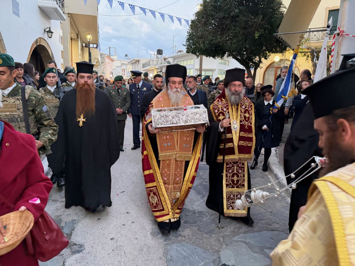 Της πανηγυρικής Θείας Λειτουργίας προεξήρχε ο Μητροπολίτης Πέτρας και Χερρονήσου κ. Γεράσιμος, συλλειτουργούντων των Μητροπολιτών Ρεθύμνης και Αυλοποτάμου κ. Προδρόμου και του Ποιμενάρχου κ. Αμφιλοχίου.